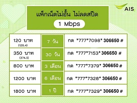 โปรเน็ต AIS ราคา 800 บาท 3 เดือน เน็ตไม่ไม่จำกัด 1 Mbps