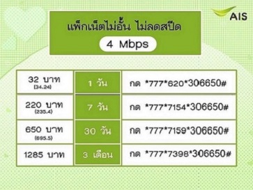 เน็ตไม่จำกัด AIS 4Mbps , โปรเน็ต AIS วันทูคอล , เน็ต 4mbps AIS ,