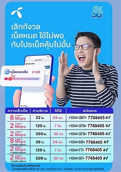 โปรเน็ตดีแทค 8 Mbps รายวัน และ 2 Mbps 7วัน และ 30วัน เน็ตไม่จำกัดปริมาณ