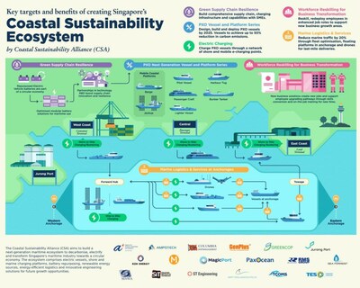 กลุ่มพันธมิตรเพื่อความยั่งยืนของชายฝั่งถือกำเนิดขึ้นเมื่อปี 2565 และบริหารงานโดยบริษัท ก๊วก มาริไทม์ (Kuok Maritime) โดยเป็นกลุ่มพันธมิตรที่ทุ่มเทความพยายามเพื่อลดคาร์บอนในอุตสาหกรรมการเดินเรือของประเทศสิงคโปร์ ผ่านการพัฒนาเรือเดินสมุทรพลังงานไฟฟ้า โครงสร้างพื้นฐานในการชาร์จไฟ และระบบบริหารจัดการพลังงาน รวมถึงโซลูชันที่ช่วยเพิ่มประสิทธิภาพโลจิสติกส์ชายฝั่ง กลุ่มพันธมิตรซึ่งมีสมาชิกทั้งหมด 18 รายคาดว่าจะใช้เงินลงทุนมากกว่า 20 ล้านดอลลาร์สิงคโปร์ในความพยายามหลาย ๆ ด้านเพื่อสร้างความยั่งยืนตลอดสิบปีข้างหน้า โดยมีเป้าหมายที่จะลดการปล่อยก๊าซคาร์บอนจากเรือเดินสมุทรลง 50% และจากการจราจรทางทะเลลง 20% ภายในปี 2573