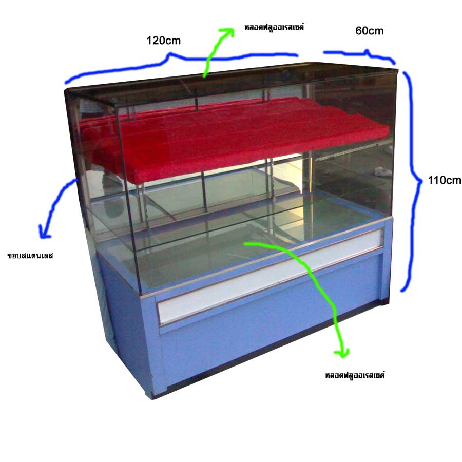 ตู้โชว์มือถือ ขนาด (กxยxส) 60cmX120cmX110cm กระจกบนอย่างหนา ชั้นบนใส่ขั้นบันไดปูกำมะหยี่สีแดง มีหลอดไฟยาวบน-ล่างอย่างละดวง ขอบตู้เป็นสแตนเลสเงางาม เรารีบิ้วให้มีสภาพเหมือนแล้วครับ มีทั้งหมด 4 ใบ ขายถูกๆเพียงใบละ 4,500 บาท