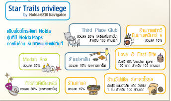 มีข่าวมาฝากคับ พอดีไปเจอมาว่าใครที่ใช้มือถือรุ่นที่มี Nokia Maps (รู้สึกจะเป็น 6210, 6220, E66, E71, N96, N78, N82) แค่โชว์มือถือก็รับส่วนลดร้านอาหารมากมายคับ ลองดูในภาพที่แนบมาละกันนะคับ