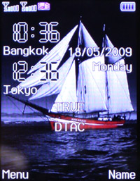 เอาล่ะ เรามาดูหน้าตากัน หน้า stanby หน้าจอนี้จะแสดงผล คลื่นสัญญาณของ ซิม 1 และ ซิม 2 และสถานะของแบตเตอรี่ วันที่และเวลา แสดงเวลาของต่างประเทศด้วย มีให้เลือกหลายประเทศครับ