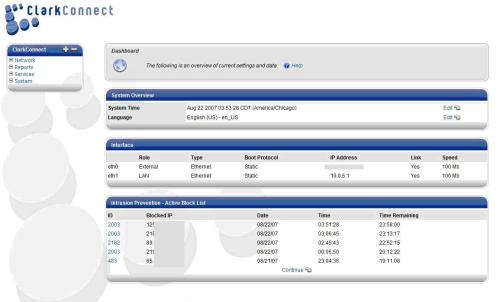 ระบบ Clark Connect จะทำงานผ่านหน้าจอ Web Browser ทั้งหมด ไม่จำเป็นต้องใช้คำสั่ง Linux Command-Line เลย จึงเหมาะสำหรับท่านที่ต้องการใช้ Linux Server แต่ไม่เคยใช้งานระบบ Linux มาก่อน