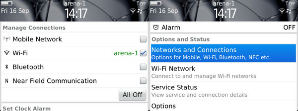 สำหรับการจัดการในเรื่องของ การเชื่อมต่ออินเทอร์เน็ต, บลูทูธ, NFC และเครือข่ายโทรศัพท์มือถือนั้น สามารถเข้าไปตั้งค่าได้ที่ Status area