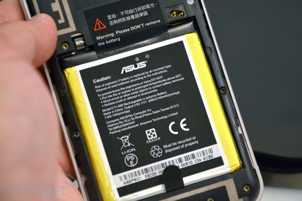 แบตเตอรี่ก็จะมีขนาดอยู่ที่ 2,140 mAh แบบ Lithium-Polymer โดยในรุ่นก่อนหน้า (Asus PadFone จะมีขนาดของแบตเตอรี่อยู่ที่ 1,520 mAh) ซึ่งถ้าหากลอกแกะฝาหลังออกก็จะพบคำเตือนที่ว่า Please Don't Remove the Battery ซึ่งถึงแม้ว่าจะแกะฝาหลังออกดู ก็ไร้วี่แววของ SDCard Slot ครับ