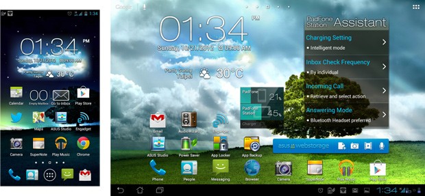 ทางฝั่งของ PadFone Station หรือ Tablet Docking นั้น ก็จะเป็นหน้าจอขนาด 10.1 นิ้วแบบ IPS LCD Display ความละเอียด 1280 x 800 Pixel อีกทั้งยังมาพร้อมกับแบตเตอรี่ที่มีขนาด 5,000 mAh โดยในรุ่นล่าสุดนี้ ตัว PadFone Station เองได้ถูกพัฒนาให้ใช้พลังงานที่น้อยลง รวมถึง น้ำหนัก และความหนาของมันยังลดลงจากเดิมถึง 30% โดยมีน้ำหนักอยู่ที่ 514 กรัมเท่านั้น จากของเดิมที่ 724 กรัม