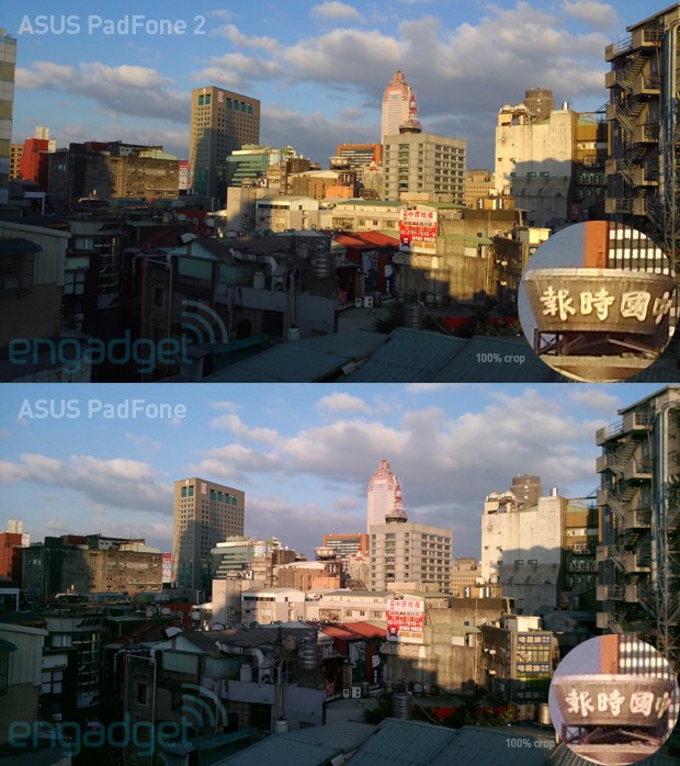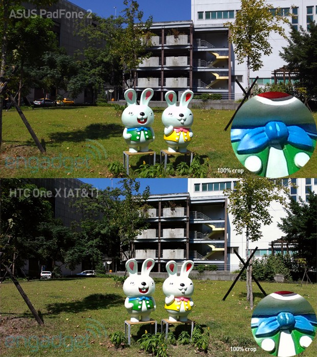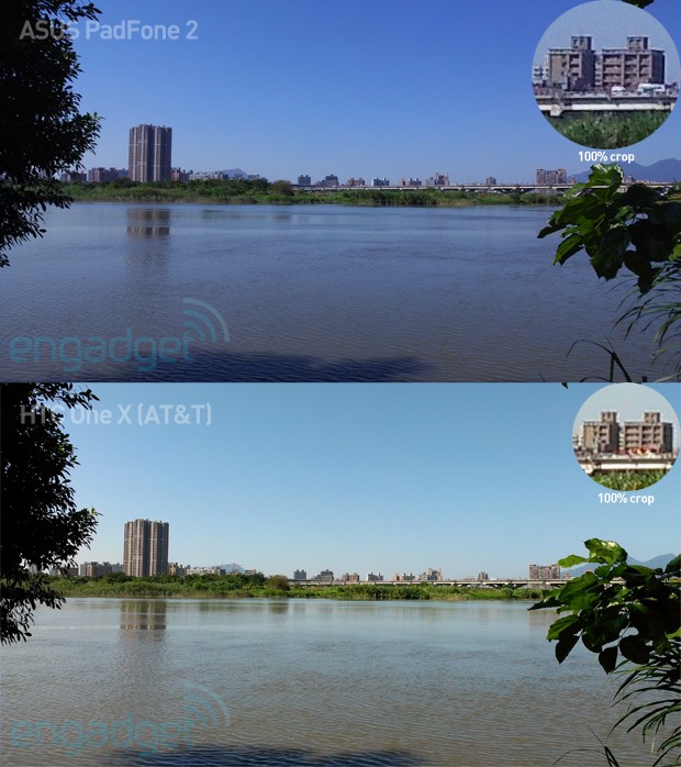 ภาพถ่ายเปรียบเทียบระหว่าง Asus PadFone 2 และ HTC One X