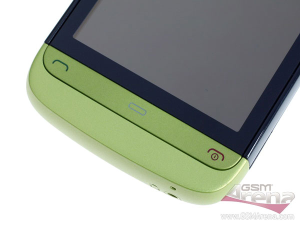 ด้านล่างของตัวเครื่องนั้นทำมาจากพลาสติก ประกอบไปด้วยไอคอน 3 ปุ่ม ได้แก่ ปุ่มกดรับสาย (ซ้าย), ปุ่มเข้าสู่เมนู (กลาง) และปุ่มกดวางสาย (ขวา)
