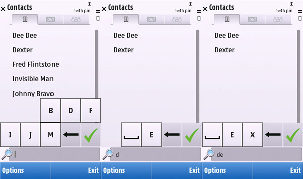 สำหรับผู้ที่ใช้ระบบปฏิบัติการซิมเบี้ยนคงจะคุ้นเคยกับหน้าตาของสมุดโทรศัพท์ (Phonebook) กันมาบ้างแล้ว สำหรับสมุดโทรศัพท์ใน Nokia C5-03 นั้นก็ไม่ต่างจากทัชโฟนรุ่นอื่นๆ ของ Nokia เท่าไรนัก สำหรับระบบการค้นหา (Searching) นั้น ก็สามารถใช้งานได้อย่างง่ายดาย เพียงแค่พิมพ์ตัวอักษร 1-2 ตัวแรกลงไปเท่านั้น