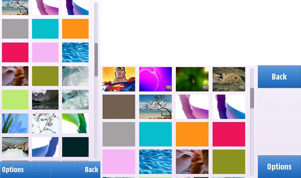 สำหรับรูปถ่ายนั้น สามารถเรียงตามวันที่, ชื่อรูป หรือขนาดของรูปก็ได้ ขึ้นอยู่กับการตั้งค่า และสามารถส่งรูปผ่านทางบลูทูธ, อีเมลล์ หรือ MMS ก็ได้ อย่างไรก็ตาม โหมดการดูรูปภาพนั้นจะอยู่ในแนวตั้ง แต่สามารถดูในแนวนอนได้ เมื่อพลิกโทรศัพท์ไป-มา