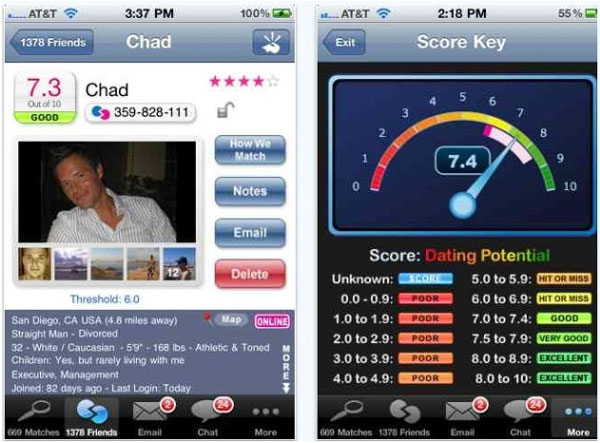 แอพพลิเคชั่นที่ช่วยให้คุณหาคนรู้ใจโดยดูจาก Score เป็นหลัก ซึ่งคุณสามารถเข้าไปดูข้อมูลส่วนตัวของคนที่ต้องการจะทำความรู้จักและติดต่อกันได้เลยทันที นอกจากนี้ ยังมีโปรแกรม At-a-glance ที่ช่วยคำนวณได้ว่า ถ้า "คุณ" กับ "เค้า" คบกัน จะได้คะแนนเท่าไหร่ ผลออกมาเป็นอย่างไร และคุ้มค่ากับการคบหาหรือไม่