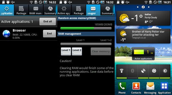 ในส่วนของ Task Manager นั้น เป็นการปิดโปรแกรมที่ไม่ใช้งาน เพื่อเป็นการไม่ทำให้เครื่องทำงานหนักจนเกินไป โดยสามารถแสดงเป็น Widgets หน้า Homescreen ได้ว่า มีกี่โปรแกรมที่ถูกเปิดและกำลังใช้งานอยู่