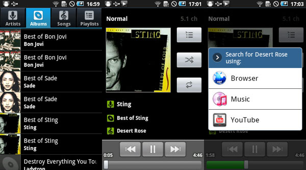 สำหรับโหมด Music Player นั้น ใช้ User Interface แบบ TouchWiz ซึ่งสามารถเรียงลำดับเพลงได้จาก Playlist ล่าสุด, ศิลปิน, อัลบั้ม หรือ คนแต่งเพลง ก็ได้ อีกทั้งยังสามารถใช้ฟังก์ชั่น Equalizer ได้อีกด้วย นอกจากนี้ ฟีเจอร์เด่นๆ ของรุ่นนี้ ก็คือ สามารถค้นหาเพลงจาก Youtube ผ่านทาง Google ได้โดยตรง