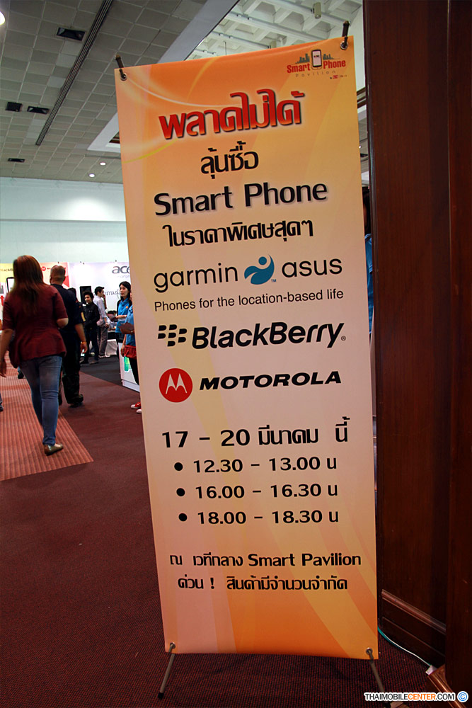 เปิดฉากอย่างเป็นทางการไปเรียบร้อยแล้วเมื่อวานที่ผ่านมา สำหรับงานมหกรรมคอมพิวเตอร์ครั้งใหญ่ประจำต้นปีอย่าง Commart Thailand 2011 ที่จัดขึ้นระหว่างวันที่ 17-20 มีนาคม 2554 ณ ศูนย์การประชุมแห่งชาติสิริกิติ์ ที่เราคุ้นเคยกันดีนั่นเอง ซึ่งแน่นอนว่างาน Commart นั้นก็จะเน้นในเรื่องของ คอมพิวเตอร์ หรือ โน๊ตบุ๊ค เป็นหลัก แต่ผลิตภัณฑ์อื่นๆ ที่อยู่ในกลุ่มสินค้าไอที หรือสินค้าเทคโนโลยี ก็มีมาแสดงและจัดจำหน่ายภายในงานเช่นเดียวกัน ซึ่งก็รวมถึงบรรดา สมาร์ทโฟน จากค่ายต่างๆ ที่พร้อมใจนัดกันมาอยู่ที่งาน Commart นี้ด้วย ซึ่งทีมงานไทยโมบายเซ็นเตอร์ก็ได้ถือโอกาสเก็บภาพบรรยากาศภายในงาน พร้อมกับโบรชัวร์ต่างๆ ของบรรดา สมาร์ทโฟน ทุกรุ่นทุกยี่ห้อมาฝากทุกท่าน ซึ่งก็มีโปรโมชั่นลดแหลกแจกแถมมากน้อยแตกต่างกันไป ท่านใดสนใจก็ติดตามกันต่อได้ครับ