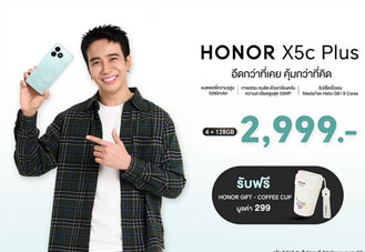 เปิดตัว HONOR X5c Plus สมาร์ตโฟนคุ้มค่าเริ่ม 2,999 บาท ชูแบต 5,260mAh ชาร์จ 15W กล้อง AI 50MP จอ 6.74" 90Hz และ RAM Turbo ขยายรวม 8GB เริ่มขาย 23 ม.ค. 2569