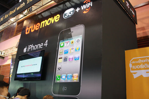 สำหรับในบูธของทรูมูฟ จะอยู่บริเวณ Plenary Hall ซึ่งเมื่อเดินผ่านประตูเข้างานทางด้านหน้าแล้ว จะสามารถมองเห็นป้ายบูธ ทรูมูฟได้อย่างชัดเจน ซึ่งในภายในบูธ ถือว่าไม่ได้แน่นจนเกินไป คิวที่จะต้องต่อเพื่อซื้อเครื่องก็ไม่ได้ยาวมากเกินไปนัก สำหรับใครที่กำลังอยากจะซื้อ iPhone 4 สักเครื่อง ลองเดินมาที่บูธทรูกันก่อนก็ได้ครับ