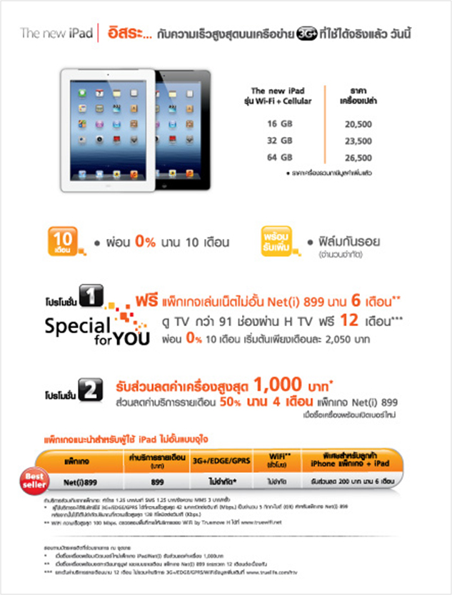 The new iPad ฟรีเล่นเน็ตไม่อั้น Net (i) 899 นาน 6 เดือน มูลค่าสูงสุด 5,394 บาท พร้อมดู H TV กว่า 91 ช่อง ฟรี 12 เดือน
