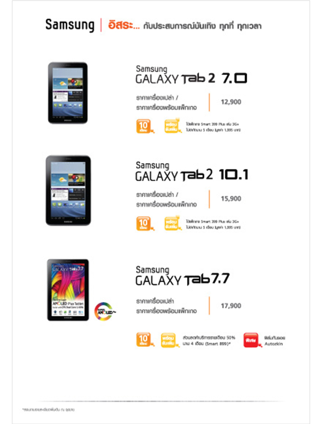 Samsung Galaxy S III ให้คุณใช้แพ๊กเกจ Smart 899 ฟรี นาน 6 เดือน และ Samsung Galaxy Tap 2 7.0 และ Samsung Galaxy Tap 2 10.1 ในราคาพิเศษ