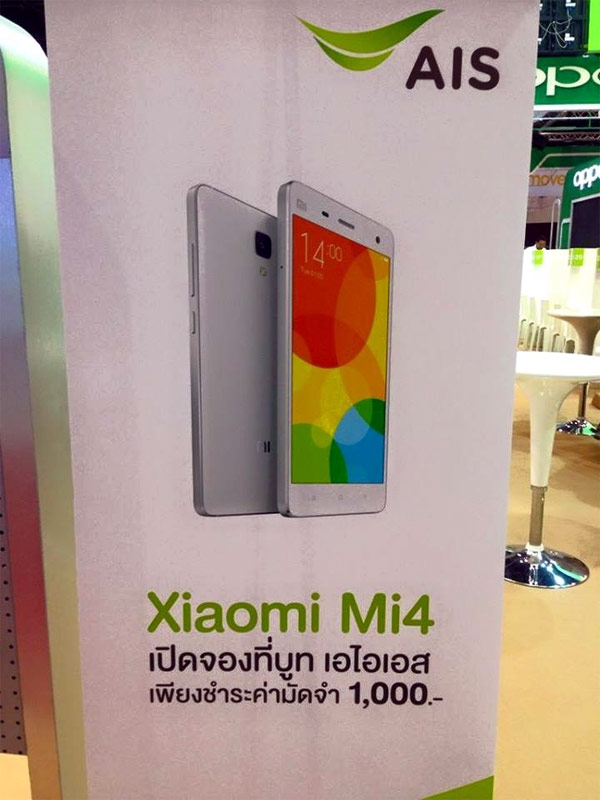 สั่งจอง Xiaomi Mi4 ราคา 10,990 บาท กับ AIS ภายในงาน TME 2015 ได้ง่ายๆ เพียงแค่วางเงินมัดจำ 1,000 บาท