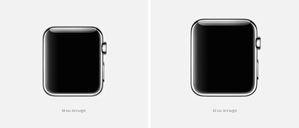 สำหรับ Apple Watch นั้นจะมีขนาดหน้าจอให้เลือก 2 รุ่น นั่นก็คือ รุ่นที่มีขนาดตัวเรือน 38 มิลลิเมตร และ ขนาดตัวเรือน 42 มิลลิเมตร โดยทั้งสองรุ่นนั้น จะมีฟีเจอร์ที่เหมือนกันทุกประการ จะแตกต่างกันเพียงแค่ขนาดเท่านั้น