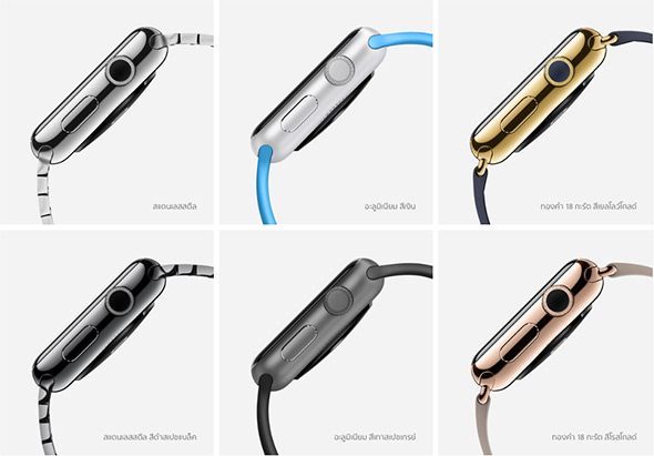 Apple Watch - มีทั้งหมด 20 รุ่น สาย 3 ชนิดคือ Sport Band, สายหนัง และสายเหล็ก ราคาเริ่มต้นตั้งแต่ 20,500 - 41,500 บาท