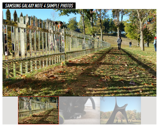 ภาพที่ถ่ายจาก Note 4 ดูสวยดี ทั้งคมชัด เนี้ยบ และแม่นยำ ระยะปรับเปลี่ยนของ Note 4 อาจจะยังไม่เทียบชั้น iPhone 6 แต่ภาพที่ผมถ่ายออกมาส่วนมากจะดูดี ตัวป้องกันภาพสั่นในตัวทำให้ถ่ายภาพได้ง่ายในที่ที่มีแสงน้อยด้วย ส่วนฟังก์ชันโฟกัสอัตโนมัติอาจจะยังไม่เสถียรสักหน่อย แต่หน้าจอความละเอียดสูงทำออกมาได้เหมาะกับช่องมองภาพที่คมชัดจนทำให้ผมมองเห็นและแก้ภาพเบลอได้ก่อนถ่าย ในภาพรวมแล้ว Note 4 มีกล้องที่จัดอยู่ในขั้นดีที่สุดตัวหนึ่งในบรรดากล้อง Android ที่ผมเคยใช้มา ถึงจะไม่ได้หวือหวากว่าใคร แต่ก็ถือเป็นกล้องมือถือที่เสถียรและใช้งานได้ดีเยี่ยม