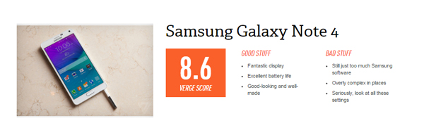 แม้จะมีจุดด้อยบางส่วนอย่างลูกเล่นที่มีมากเกินไปซึ่งจะต้องปรับและให้ประสบการณ์แบบ Android ในทุกด้าน แต่ซัมซุงก็กำลังเดินหน้าปรับปรุง ทั้งนี้ Note 4 ยังซับซ้อนเกินไป เน้นประสิทธิภาพมากกว่าการใช้งานจริง คุณสามารถใช้งานมือถือเครื่องนี้ได้มากมายก็จริงอยู่ แต่หลายๆ อย่างก็เป็นสิ่งที่ไม่จำเป็นเลย จริงที่ว่า iPhone 6 Plus ใช้งานง่ายกว่าและมีระบบแอพที่ดีกว่า แถมกล้องก็เหนือกว่านิดหน่อยด้วย แต่ถ้ามอง Note 4 กันจริงๆ แล้ว ผมเห็นซัมซุงที่มองเห็นรอบด้านและกำลังปรับปรุงมือถือของตัวเองอย่างช้าๆ แต่มั่นคง