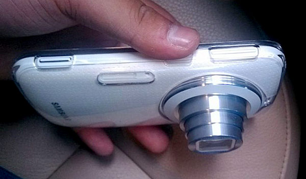 รายละเอียดที่น่าสนใจในเรื่องของดีไซน์คือ Samsung Galaxy K Zoom (ภาพบน) ไม่มีกริปมือจับหนาๆ เหมือนอย่างที่เคยมีใน Samsung Galaxy S4 Zoom (ภาพล่าง) อีกทั้งส่วนชิ้นเลนส์ยังนูนออกมาจากตัวเครื่องน้อยกว่าอีกด้วย ทำให้ Samsung Galaxy K Zoom ในขณะที่ไม่ได้ใช้ถ่ายภาพ (ชิ้นเลนส์หุบเข้าไปเก็บในตัวเครื่อง) จะมีรูปทรงคล้ายสมาร์ทโฟน ดูแบนบาง และน่าจะน้ำหนักเบากว่ารุ่นพี่อย่าง Samsung Galaxy S4 Zoom อยู่ไม่น้อย ทำให้พกพาติดตัวไปไหนมาไหนได้สะดวกมากขึ้น สำหรับผู้รักการถ่ายภาพที่อาจจะเคยเล็ง Samsung Galaxy S4 Zoom ไว้ แต่ยังไม่ตกลงปลงใจซื้อเพราะว่าตัวเครื่องยังดูหนาเกินไป รุ่นใหม่อย่าง Samsung Galaxy K Zoom ก็น่าจะตอบความต้องการได้ตรงจุด