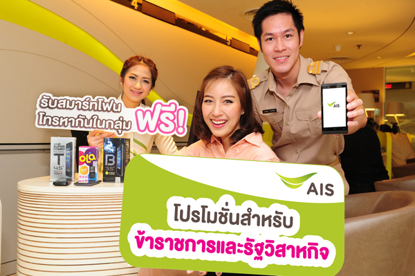 เอไอเอส มอบความคุ้มค่า เพื่อลูกค้ากลุ่มข้าราชการและพนักงานรัฐวิสาหกิจ รับฟรี! สมาร์ทโฟน พร้อมโทรหากันในกลุ่มฟรี!