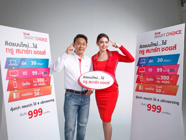 เปิดตัว ทรู สมาร์ท ชอยส์ ครบกว่า คุ้มกว่า ได้ 4 บริการจากทรู ได้เพิ่มขึ้น แต่จ่ายน้อยลง กับแพ็กเกจ 4 บริการ เริ่มต้นเพียงเดือนละ 999 บาท