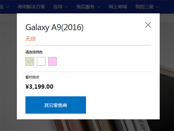 ล่าสุดจากเว็บไซต์ทางการของ Samsung ประเทศจีน ได้ทำการระบุไว้ว่า Samsung Galaxy A9 มีราคาเปิดตัวที่ 3,199 หยวน หรือประมาณ 17,700 บาท โดยจะวางจำหน่ายทั้งหมด 3 สีด้วยกัน ซึ่งได้แก่ สีทอง, สีเงิน และสีชมพู