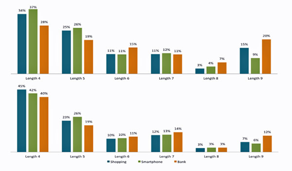 Marte Løge ได้ทดลองให้ผู้ใช้สร้างรูปแบบขึ้นมา 3 แบบ โดยใช้กับการเข้าถึง 3 สิ่งด้วยกันคือ แอปพลิเคชันธนาคารออนไลน์, แอปพลิเคชันสำหรับซื้อของ และการปลดล็อกสมาร์ทโฟน พบว่า รูปแบบการใช้ที่พบมากที่สุดคือการใช้จุดเพียง 4 จุด ตามมาด้วยรูปแบบ 5 จุด ในขณะที่ผู้ทดลองที่เลือกใช้รูปแบบจาก 8 หรือ 9 จุดนั้น จะใช้รูปแบบเดียวกันเป็นส่วนใหญ่ แต่ด้วยเหตุผลใดก็ไม่ทราบได้ การเลือกใช้จุด 8 จุด เป็นวิธีที่มีผู้เลือกน้อยที่สุด