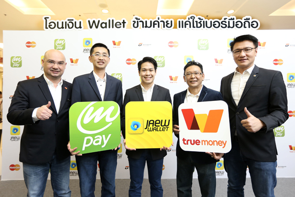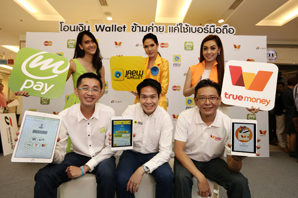 กรุงเทพฯ - 17 พฤศจิกายน 2558 - 3 ค่ายมือถือยักษ์ใหญ่ “เอไอเอส – ดีแทค – ทรูมูฟ เอช” ผนึกกำลังเชื่อมต่อระบบกระเป๋าเงินออนไลน์บนมือถือ (อี-วอลเลท) สร้างมิติใหม่เขย่าวงการ อี-มันนี่ เมืองไทย ครั้งแรกกับการเปิดให้บริการโอนเงินข้ามแอปพลิเคชั่นกระเป๋าเงินออนไลน์ ระหว่าง AIS mPAY, Jaew Wallet และ Wallet by TrueMoney ได้โดยไม่จำกัดค่าย เพียงแค่รู้เบอร์มือถือ มอบความสะดวกสบายให้ลูกค้าโอนเงินและใช้จ่ายค่าสินค้าและบริการต่างๆ ได้เพียงปลายนิ้ว ทุกที่ทุกเวลา เกาะกระแสอี-คอมเมิร์ชและโมบาย คอมเมิร์ช ที่กำลังได้รับความนิยมมากขึ้นเรื่อยๆ โดยมี มาสเตอร์การ์ด และ ธนาคารธนชาต เป็นพันธมิตรสำคัญที่ให้การสนับสนุนด้านความปลอดภัยด้วยมาตรฐานสากลที่ลูกค้ามั่นใจได้ ซึ่งความร่วมมือในครั้งนี้ ถือเป็นการทำงานร่วมกันในกลุ่มผู้ให้บริการอี-มันนี่ เพื่อกำหนดมาตรฐานใหม่ให้กับอุตสาหกรรม ยกระดับอี-วอลเลทในประเทศไทยให้เกิดการใช้งานที่แพร่หลายมากขึ้น หวังสร้างให้เกิด Cashless Society ตลอดจนตอบสนองนโยบายเศรฐกิจดิจิทัลของประเทศอย่างแท้จริง
