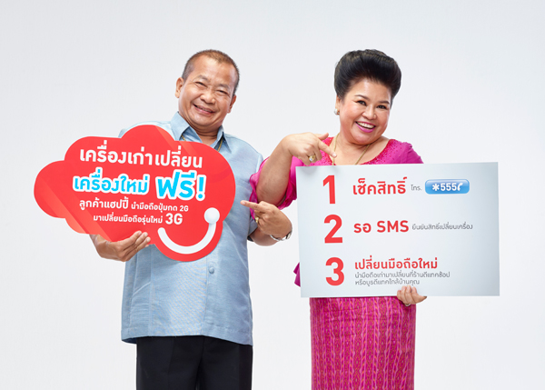 แฮปปี้ให้ลูกค้านำมือถือ 2G มาเปลี่ยนเครื่อง 3G ฟรี เพียงเติมเงินขั้นต่ำ 100 บาท