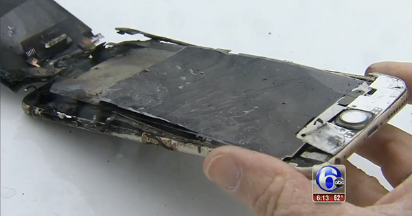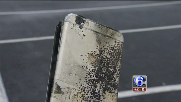Darin Hlavaty ซึ่งเป็นนักเรียนใน Burlington County College ในรัฐนิวเจอร์ซีย์ ให้สัมภาษณ์กับสำนักข่าว 6ABC ประจำท้องถิ่นว่า เขาใส่ iPhone 6 Plus ของเขาไว้ในกระเป๋าหลังของกางเกงยีนส์ และนั่งทับไว้ในขณะที่กำลังจะเริ่มเรียน แต่หลังจากนั้นไม่นานไอโฟนเครื่องดังกล่าวก็เริ่มมีควันออกมา โดย Rebecca Bookbinder นักเรียนอีกรายหนึ่งเล่าว่า เธอได้ยินเสียงคล้ายอะไรกำลังไหม้ และเสียงระเบิดเล็กๆ จากนั้นเธอก็เห็นว่ามีกลุ่มควันพวยพุ่งออกมาจากกระเป๋ากางเกงด้านหลังของ Hlavaty ทุกคนจึงเข้าใจได้ทันทีสมาร์ทโฟนของเขากำลังไหม้อยู่ ส่วน Hlavaty กล่าวว่า เมื่อเขารู้ว่าไอโฟนของเขากำลังไหม้ จึงรีบหยิบออกมาจากกระเป๋ากางเกง แต่ตัวเครื่องร้อนมาก ทำให้เขาต้องทิ้งโทรศัพท์ลงพื้นทันที และก็เกิดไฟลุกขึ้นตามมา