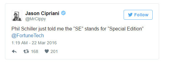 ล่าสุดมีผู้ใช้ทวิตเตอร์ออกมาเปิดเผยว่า Phil Schiller หัวหน้าส่วนการตลาดได้ออกมาเปิดเผยว่า SE นั้นมาจากคำว่า "Special Edition" หรือ รุ่นพิเศษนั่นเอง