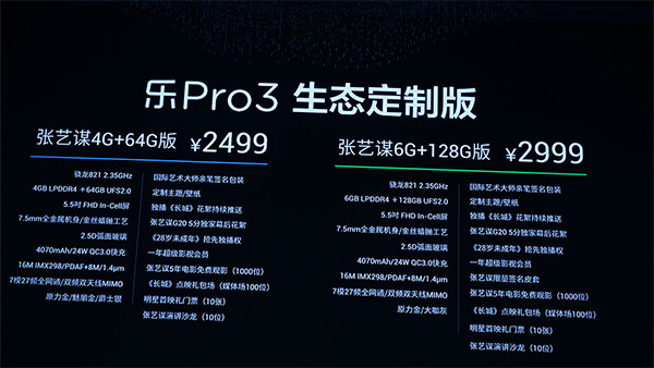 นอกจากนี้ยังมีการวางจำหน่าย LeEco Le Pro 3 Zhang Yimou edition รุ่นพิเศษจากผู้กำกับภาพยนตร์ชื่อดังจากประเทศจีนอย่าง จาง อี้โหมว อีกเป็นจำนวน 2 รุ่นด้วยกัน ดังนี้