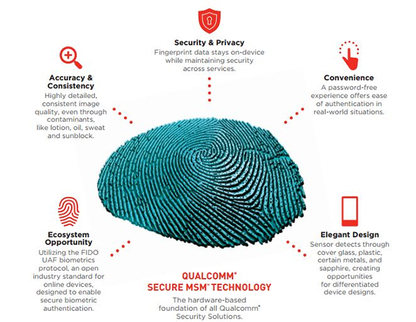 สำหรับเทคโนโลยี Sense ID ก็คือระบบรักษาความปลอดภัยด้วยการสแกนลายนิ้วมือ ซึ่งถูกพัฒนาขึ้นมาโดยบริษัท Qualcomm มีหลักการทำงานด้วยการใช้คลื่น Ultrasonic ในการสแกนนิ้วมือ และสร้างภาพแผนผังลายนิ้วมือของมนุษย์ได้ละเอียดกว่าแบบอื่นๆ โดยตัวเซ็นเซอร์ถูกติดตั้งไว้ที่ด้านหลังของตัวเครื่อง ห่างจากผิวโลหะชั้นนอกประมาณ 400 µm (ไมโครเมตร) และข้อดีของการใช้คลื่น Ultrasonic อีกประการหนึ่งก็คือ แม้ว่าตัวเซ็นเซอร์จะถูกบดบังด้วยวัสดุโลหะก็สามารถใช้งานได้ตามปกติ ไม่เกิดผลกระทบใดๆ ทั้งสิ้น