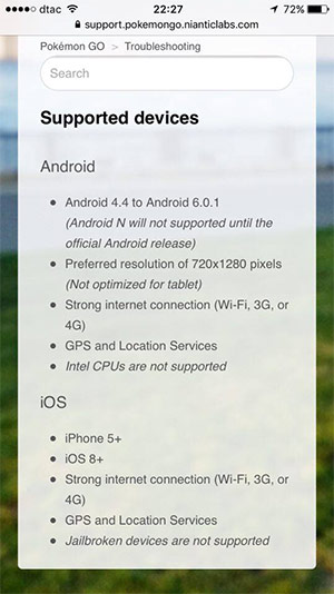 สมาร์ทโฟนรุ่นใดที่สามารถเล่น Pokemon Go ได้บ้าง?