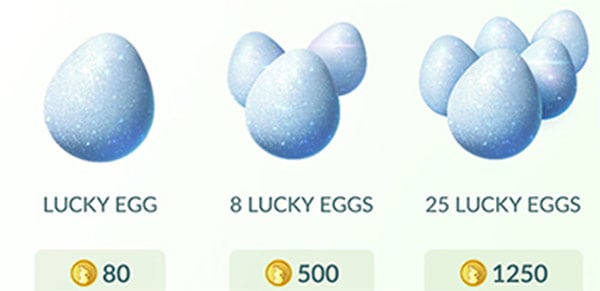 Lucky Egg - ไข่นำโชค เมื่อเปิดใช้จะส่งผลให้ค่า EXP เพิ่มเป็น 2 เท่า ไอเทมชิ้นนี้มีผล 30 นาที