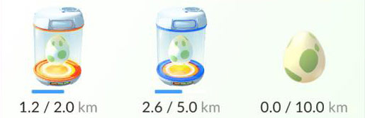 Pokemon Egg - ไข่โปเกมอนที่มีวิธีการฟักไข่คือ การเดินตามระยะทางที่กำหนด โดยไข่โปเกมอนจะแบ่งออกตามระยะทาง คือ 2 กิโลเมตร, 5 กิโลเมตร และ 10 กิโลเมตร