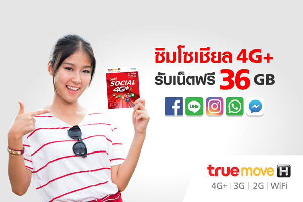 ทรูมูฟ เอช ให้ลูกค้าเติมเงินใช้ 4G แรงสะใจกับซิมใหม่ ซิมโซเชียล 4G Plus รับฟรีเน็ต 4G+ แรงเต็มสปีด สูงสุดถึง 36 GB ซิมเดียวจบได้ครบทุกเรื่องโซเชียล