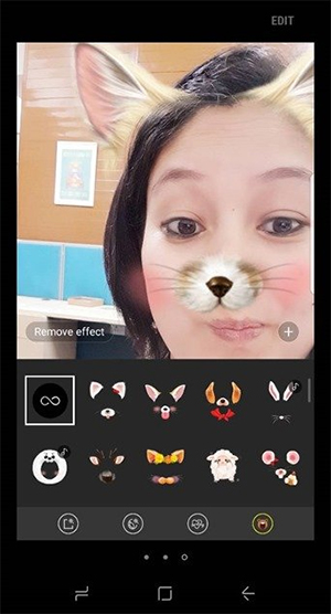 สุภาพสตรีหลายๆ ท่านคงชื่นชอบการถ่ายภาพเซลฟี่ แล้วนำไปตกแต่งฟิลเตอร์ หรือรายละเอียดต่างๆ เพิ่มเติม ซึ่บน Galaxy S8 ได้มีการเพิ่มเอฟเฟกต์สำหรับถ่ายภาพเซลฟี่เข้ามาให้ด้วย โดยจะเป็นฟิลเตอร์การ์ตูนรูปแบบต่างๆ ให้เลือกใช้