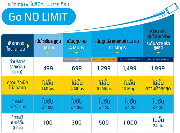 แพ็กเกจ Go No Limit แบบรายเดือน
