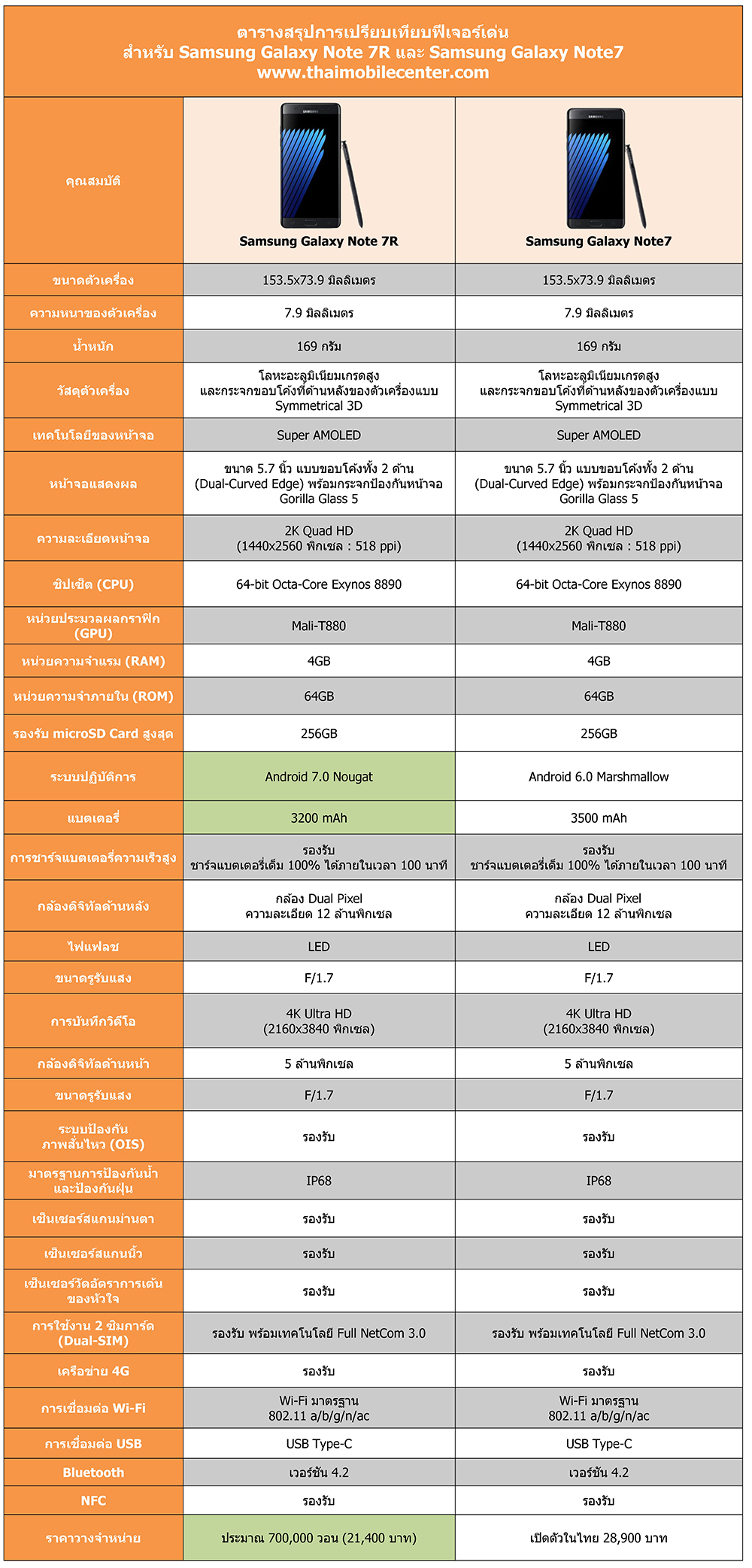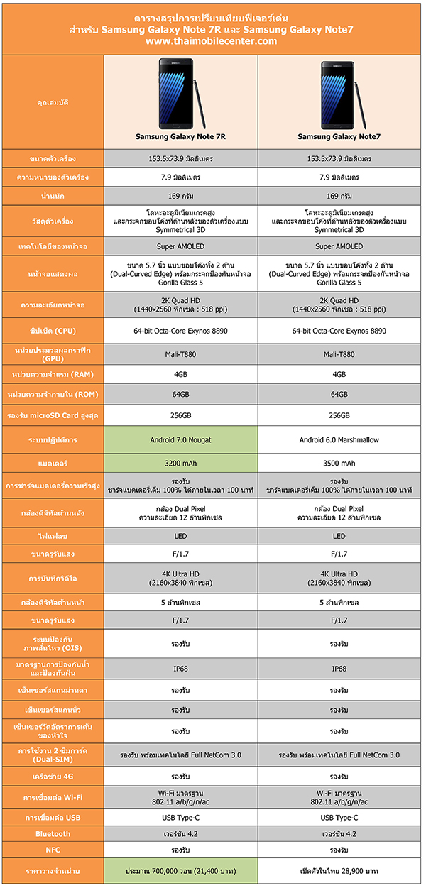 แม้ว่า Samsung จะประสบปัญหาหนักจากกรณีของ Galaxy Note7 แต่ก็นับว่า Samsung รับมือกับสถานการณ์ที่เกิดขึ้นได้ดี อีกทั้งยังแก้ไขปัญหาเฉพาะจุดแล้วนำมาวางจำหน่ายเพื่อชดเชยรายได้ที่ขาดหายไปได้อีกด้วย ซึ่งถ้าหากว่ากันตามจริงแล้ว Samsung Galaxt Note7 ก็เป็นหนึ่งในสมาร์ทโฟนที่ผู้ใช้ทั่วโลกต้องการมากที่สุดรุ่นหนึ่งหลังจากเปิดตัวอย่างเป็นทางการ และถ้าหากมีการแก้ไขปัญหาทั้งหมดอย่างเรียบร้อย แล้ววางจำหน่ายอีกครั้งในราคาที่ถูกลงกว่าเดิมก็น่าจะมีผู้ที่สนใจจำนวนไม่น้อยทีเดียว และความแตกต่างกันระหว่าง Samsung Galaxy Note 7R และ Galaxy Note7 อาจสรุปได้ง่าย ดังนี้