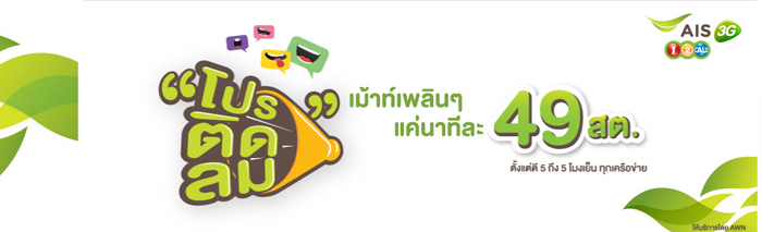 ตอนนี้คุณอยู่ที่ >> หน้าแรก >> Catalog โปรโมชั่นมือถือ >> หน้ารายละเอียด โปรโมชั่น โปรติดลม ( AIS : เอไอเอส )