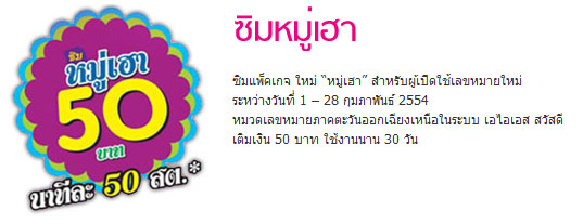 ตอนนี้คุณอยู่ที่ >> หน้าแรก >> Catalog โปรโมชั่นมือถือ >> หน้ารายละเอียด โปรโมชั่น ซิมหมู่เฮา ( AIS : เอไอเอส )