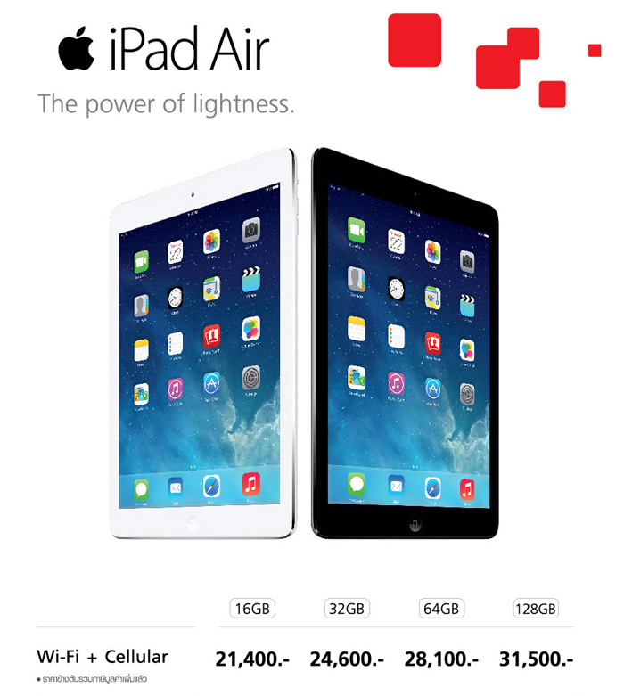 ตอนนี้คุณอยู่ที่ >> หน้าแรก >> Catalog โปรโมชั่นมือถือ >> หน้ารายละเอียด โปรโมชั่น iPad Air ( TrueMove H : ทรูมูฟ เอช )