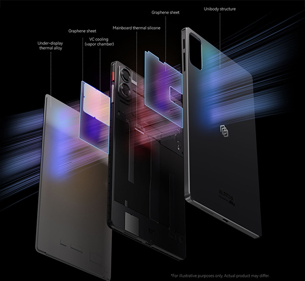 แท็บเล็ตที่ถูกออกแบบมาสำหรับการเล่นเกม ไม่เพียงแค่ต้องมีชิปเซ็ตตัวแรงเท่านั้น ระบบระบายความร้อนก็ถือว่าเป็นปัจจัยสำคัญเช่นกัน โดย Alldocube iPlay 70 mini มาพร้อมระบบระบายความร้อน Vapor Champer ขั้นสูง ซึ่งประกอบด้วย Vapor Chamber ขนาด 9,838 ตารางมิลลิเมตร, แผ่นนำความร้อน Graphene Sheet เกรดสูง ทำหน้าที่กระจายและระบายความร้อน โดยขนาดพื้นที่ของ Graphene Sheet ชิ้นแรก อยู่ที่ 5,382 ตารางมิลลิเมตร และขนาดพื้นที่ของ Graphene Sheet ชิ้นที่สอง อยู่ที่ 9,350 ตารางมิลลิเมตร ทำให้มีพื้นที่ระบายความร้อนรวมอยู่ที่ 24,570 ตารางมิลลิเมตร ความร้อนจึงกระจายตัวได้ไว ทำให้ตัวเครื่องไม่ร้อนจัดเมื่อเล่นเกมกราฟิกสูงอย่าง Genshin Impact หรือ Asphalt